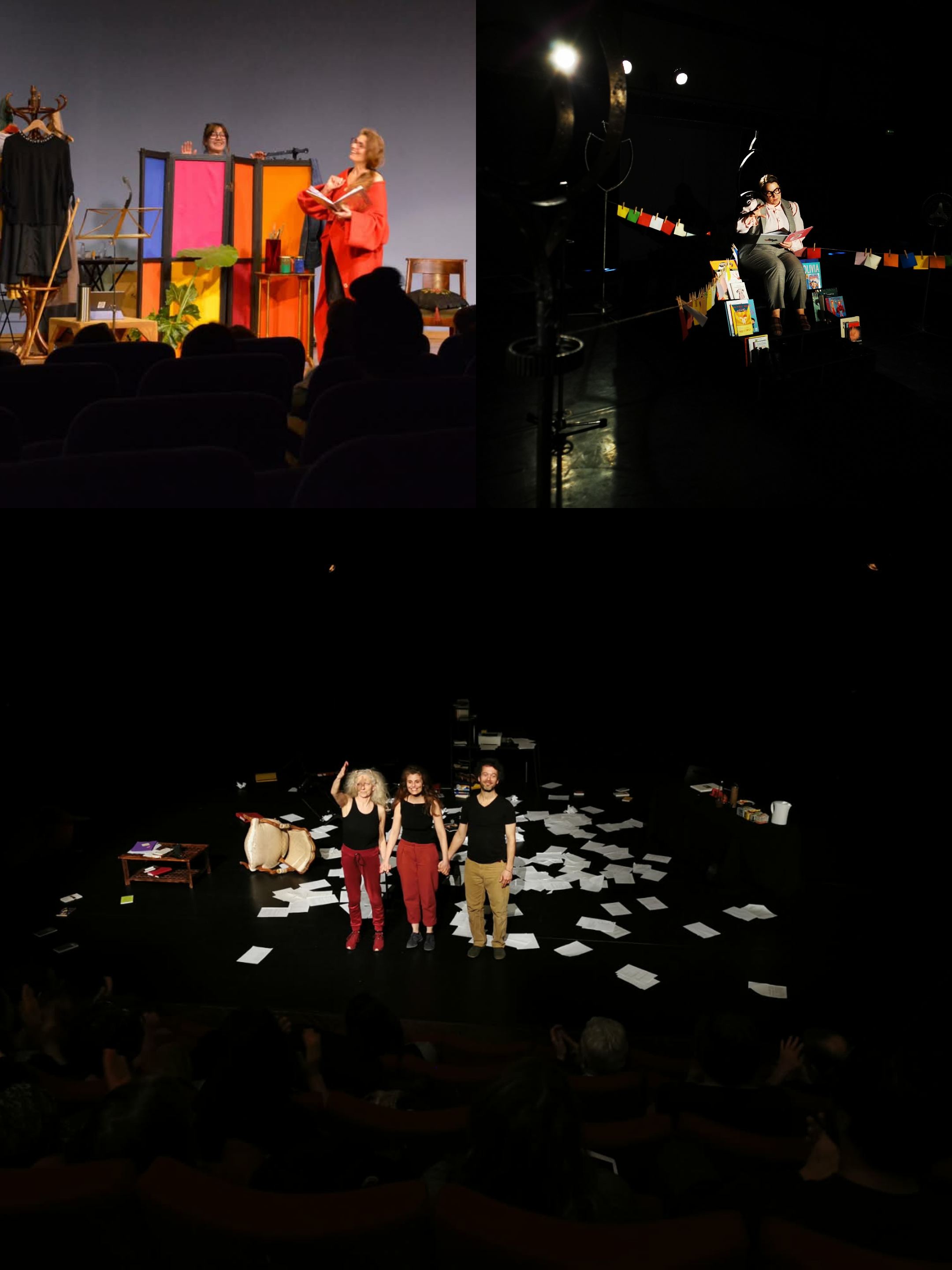 Tout en se concentrant sur le lien entre l'écrit et le jeu, sur la mise en histoire du récit: la narration, et la cohérence chronologique elle a peaufiné l'écriture de la suite et la fin du spectacle.